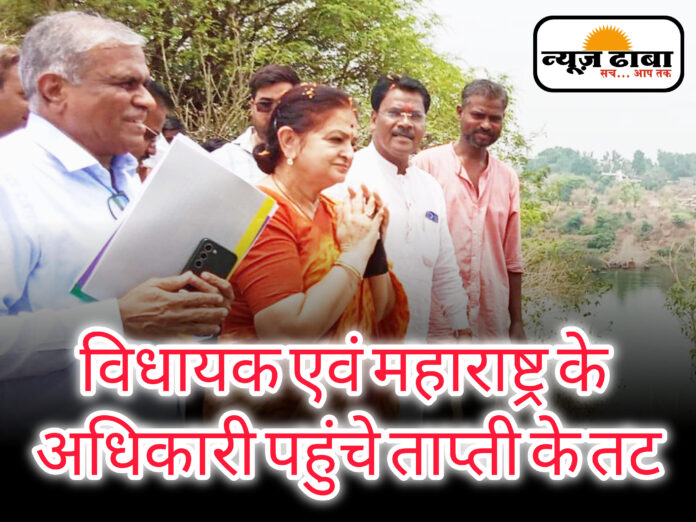 ताप्ती बेसिन मेगा रिचार्ज परियोजना के एमओयू बाद योजना की सूत्रधार अर्चना चिटनिस ने ताप्ती तट पहुंचकर किया नमन।