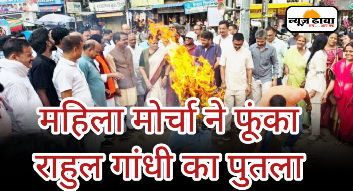 बुरहानपुर(न्यूज़ ढाबा)–प्रधानमंत्री श्री नरेन्द्र मोदी जी की दिवंगत माता जी को लेकर कांग्रेस नेताओं द्वारा अपमानजनक शब्दों का प्रयोग करने के खिलाफ बुरहानपुर के कमल चौक पर भाजपा महिला मोर्चा ने विरोध प्रदर्शन किया। विधायक एवं पूर्व कैबिनेट मंत्री श्रीमती अर्चना चिटनिस (दीदी), भाजपा जिलाध्यक्ष डॉ.मनोज माने एवं के नेतृत्व में महिला मोर्चा के साथ पार्टी पार्टी पदाधिकारियों-कार्यकर्ताओं ने राहुल गांधी का पुतला जलाकर विरोध प्रदर्शन किया और अपना रोष व्यक्त किया।