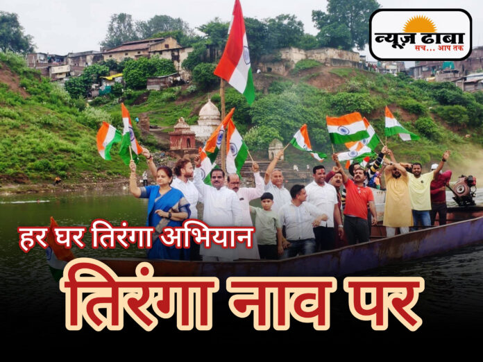 बुरहानपुर(न्यूज़ ढाबा)–आजादी के अमृत महोत्सव को हर कोई अपने तरीके से मना रहा है। स्वतंत्रता दिवस के उपलक्ष्य में विधायक एवं पूर्व कैबिनेट मंत्री श्रीमती अर्चना चिटनिस (दीदी) के नेतृत्व में एक नवाचार मां ताप्ती नदी के बीच लहरो में दर्जनों नावें उसमे सवार देश भक्त नागरिक, कार्यकर्ताओ ने तिरंगा लहराया। ‘‘हर घर तिरंगा अभियान‘‘ के तहत बुरहानपुर में सूर्यपुत्री ताप्ती नदी में नाव पर सवार होकर श्रीमती चिटनिस, भाजपा जिलाध्यक्ष, पूर्व महापौर, पार्टी पदाधिकारियों, कार्यकर्ता और समर्थकों के साथ ताप्ती नदी के बीच पहुंची। उन्होंने ताप्ती नदी की लहरों के बीच देश की आन, बान और शान का प्रतीक तिरंगा को लहराया। इस अनोखी तिरंगा यात्रा को देखने के लिए नागझिरी घाट, राजघाट पर बड़ी संख्या में नागरिक पहुंचे। घाट पर मौजूद लोगों ने देश की आजादी का जश्न मनाते हुए देशभक्ति के नारे लगाए। भारत माता की जय और वंदे मातरम के नारों से नगर और आसपास के गांवों में मां ताप्ती के तट गुंजायमान हो उठे।