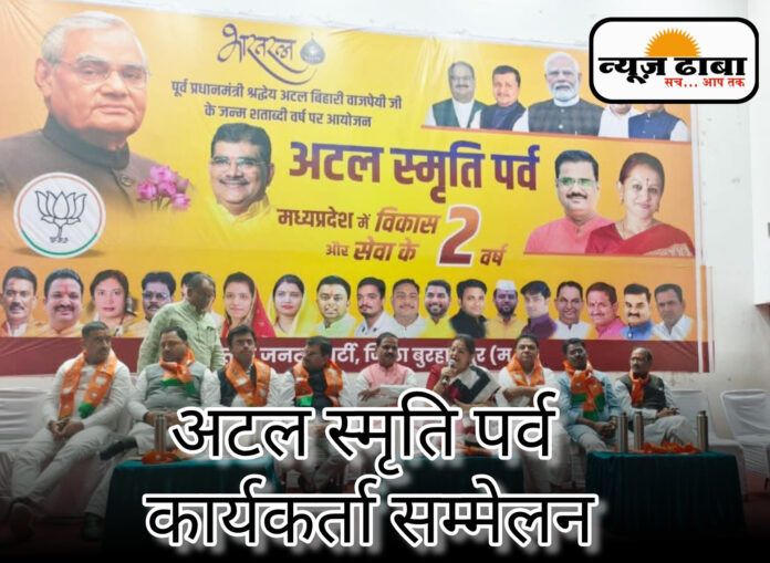बुरहानपुर। भारत रत्न पूर्व प्रधानमंत्री श्रद्धेय श्री अटल बिहारी वाजपेयी जी की स्मृति एवं मध्य प्रदेश सरकार के दो वर्ष के सफल कार्यकाल पूर्ण होने पर विधानसभा स्तरीय सम्मेलनो का आयोजन किया जा रहा है। इसी कड़ी में सोमवार को नेपानगर विधानसभा के ग्राम डोईफोड़िया में विधानसभा स्तरीय सम्मेलन का आयोजन हुआ।सम्मेलन में सांसद श्री ज्ञानेश्वर पाटील, नेपानगर विधायक सुश्री मंजू राजेंद्र दादू,भाजपा जिला अध्यक्ष डॉ मनोज माने सहित जनप्रतिनिधियों ने प्रदेश सरकार के दो वर्ष के कार्यकाल की उपलब्धियों की विस्तृत जानकारी दी।