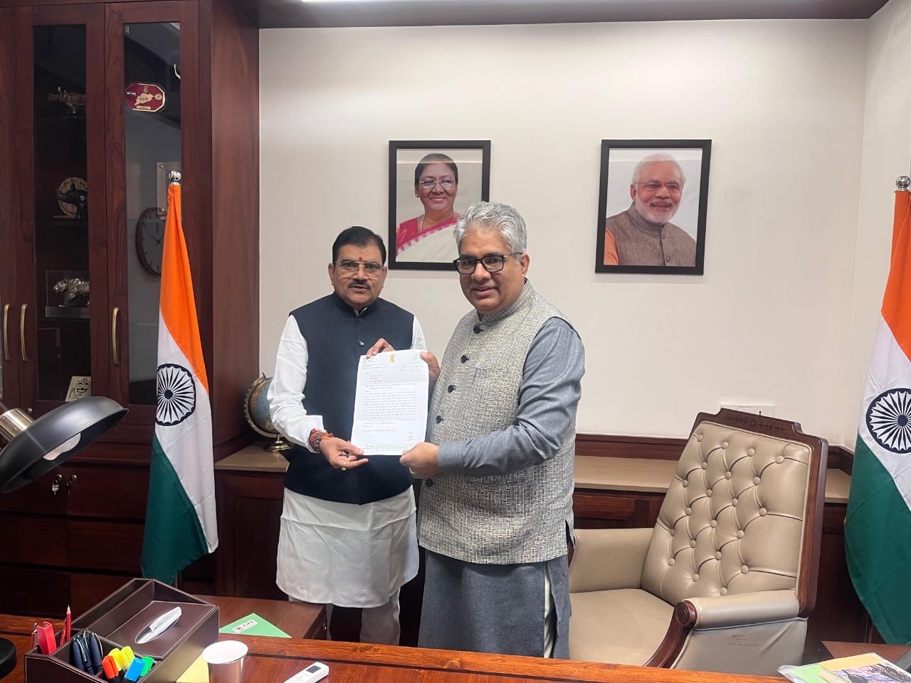 बुरहानपुर | खंडवा लोकसभा सांसद ज्ञानेश्वर पाटील ने बुधवार को नई दिल्ली में केंद्रीय वन मंत्री भूपेंद्र यादव से मुलाकात की। इस दौरान सांसद ने केंद्रीय मंत्री को पत्र सौंप आग्रह किया कि संसदीय क्षेत्र की आदिवासी बाहुल्य क्षेत्र नेपानगर की 1665 एकड़ वनभूमि को राजस्व भूमि में परिवर्तित करते हैं तो क्षेत्रवासियों को राज्य तथा केंद्र सरकार की कई योजनाओं का लाभ मिल पाएगा साथ ही नवीन उद्योग स्थापना में भी मदद मिलेगी। केंद्रीय मंत्री ने आश्वस्त किया कि प्रधानमंत्री श्री नरेंद्र मोदी जी के नेतृत्व वाली सरकार जनहितैषी सरकार है इस मांग पर उचित निर्णय लिया जाएगा।