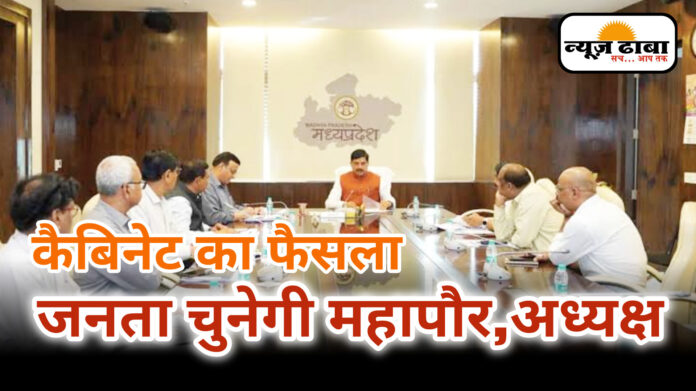 (न्यूज़ ढाबा)–मध्यप्रदेश में दो साल बाद नगरीय निकाय चुनाव होना है। जिसको लेकर मध्यप्रदेश सरकार ने नगरीय निकाय चुनाव की प्रणाली में संशोधन करने का निर्णय लिया है। जिसके तहत प्रदेश की नगरीय निकायों में अब महापौर और अध्यक्ष को सीधे जनता चुनेंगी। यानी अब नगरीय निकाय के सीधे चुनाव होंगे। इस प्रस्ताव को कैबिनेट से मंजूर कर दिया गया है।